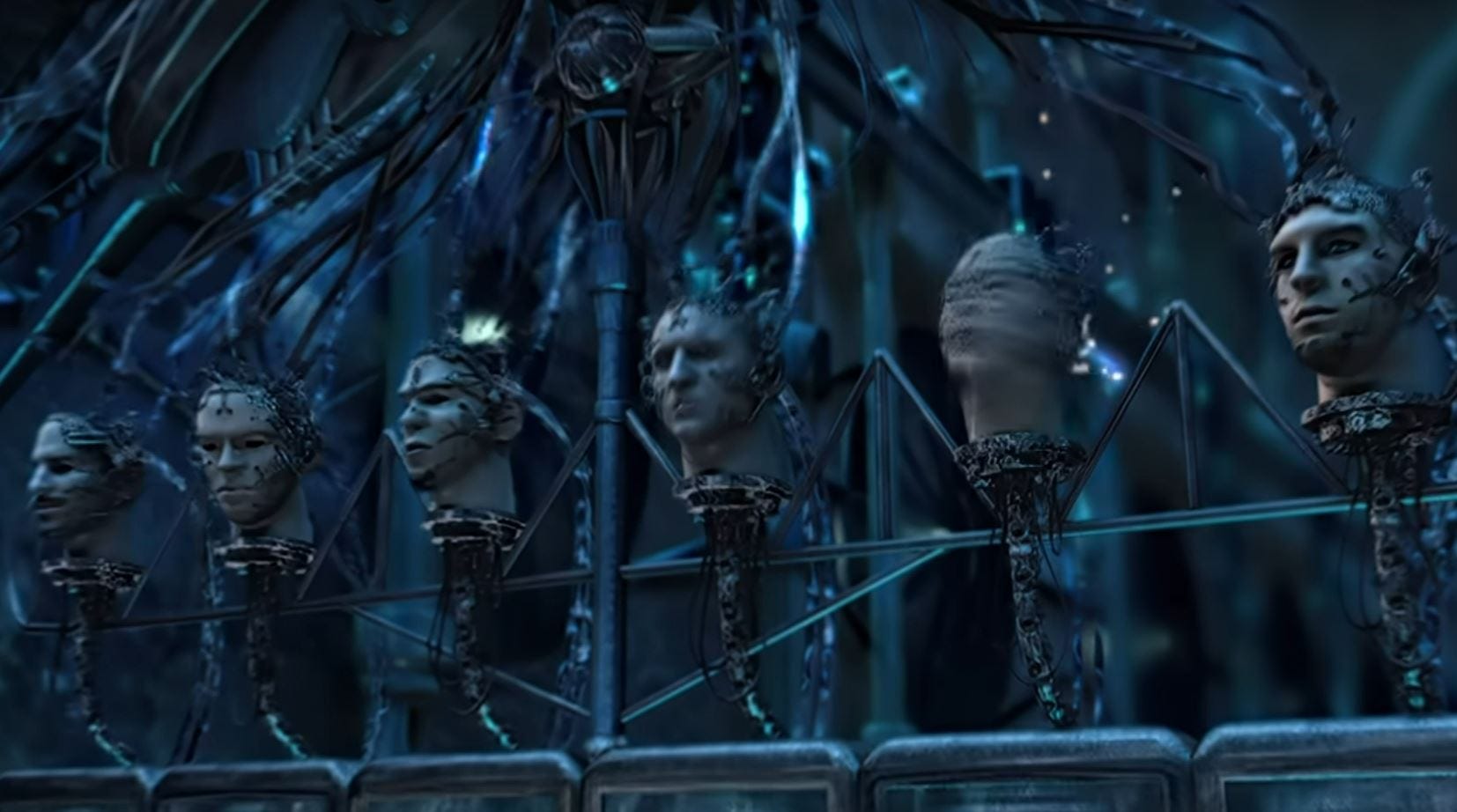 Even today, the video is quite a showpiece. It definitely gives off the vibe of those old 90s Mind's Eye VHS compilations produced to showcase fully CGI vignettes scored by rock bands. The twist here are the influences. There's no getting around (nor is Hahn hiding) the fact that this whole battle is particularly evocative of where CGI was at in 2002. We're talking battle scenes shot and directed with wide pan outs and close cut ins like the cutscenes in PC games of the time, glowing blue amorphous tentacles calling back to Final Fantasy: The Spirits Within, dark & shiny metallic skins on aliens that would fit right in with the Protoss.